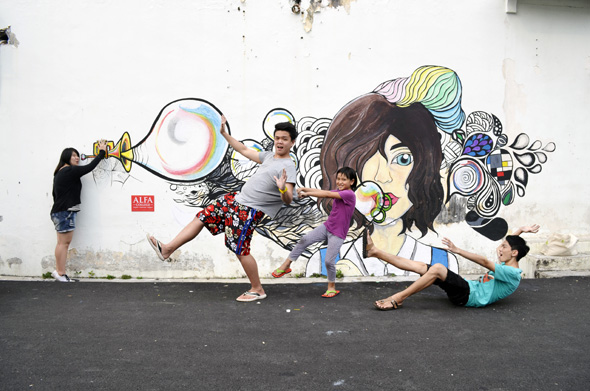 The sites for the 8 murals painted by ALFA students are concentrated along the alleys of Jalan Dato Muda Jaafar and Jalan Mat Kilau. (Open Map)