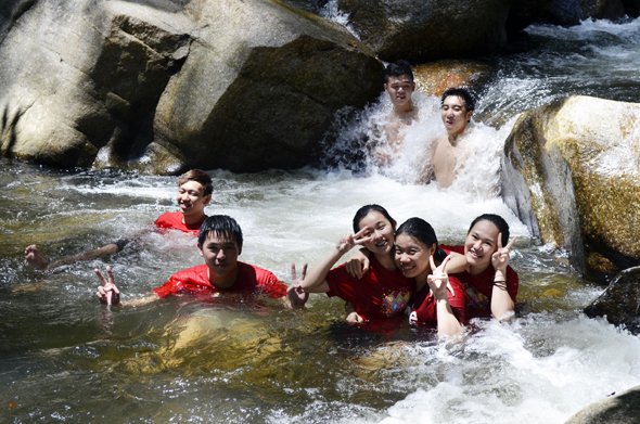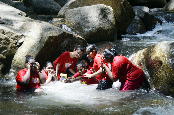 Cold gushing water did not stop the students from a wefie (with the help of a waterproof pouch of course).