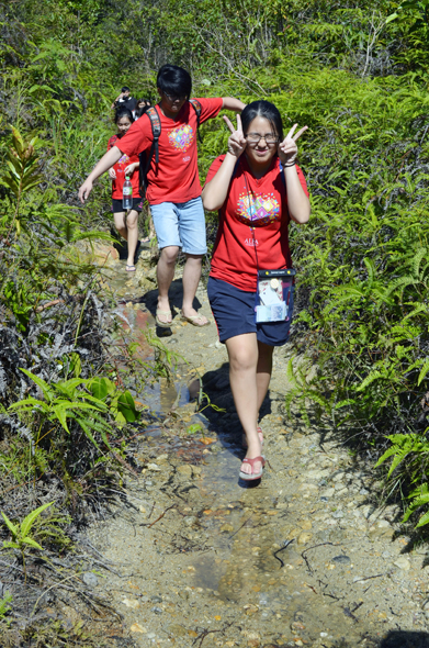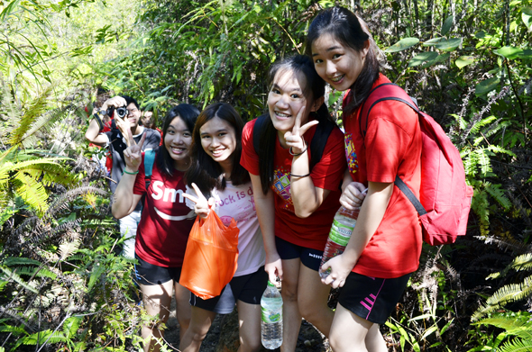 Students still fresh and energized to pose for photos along the way at the start of the hike.