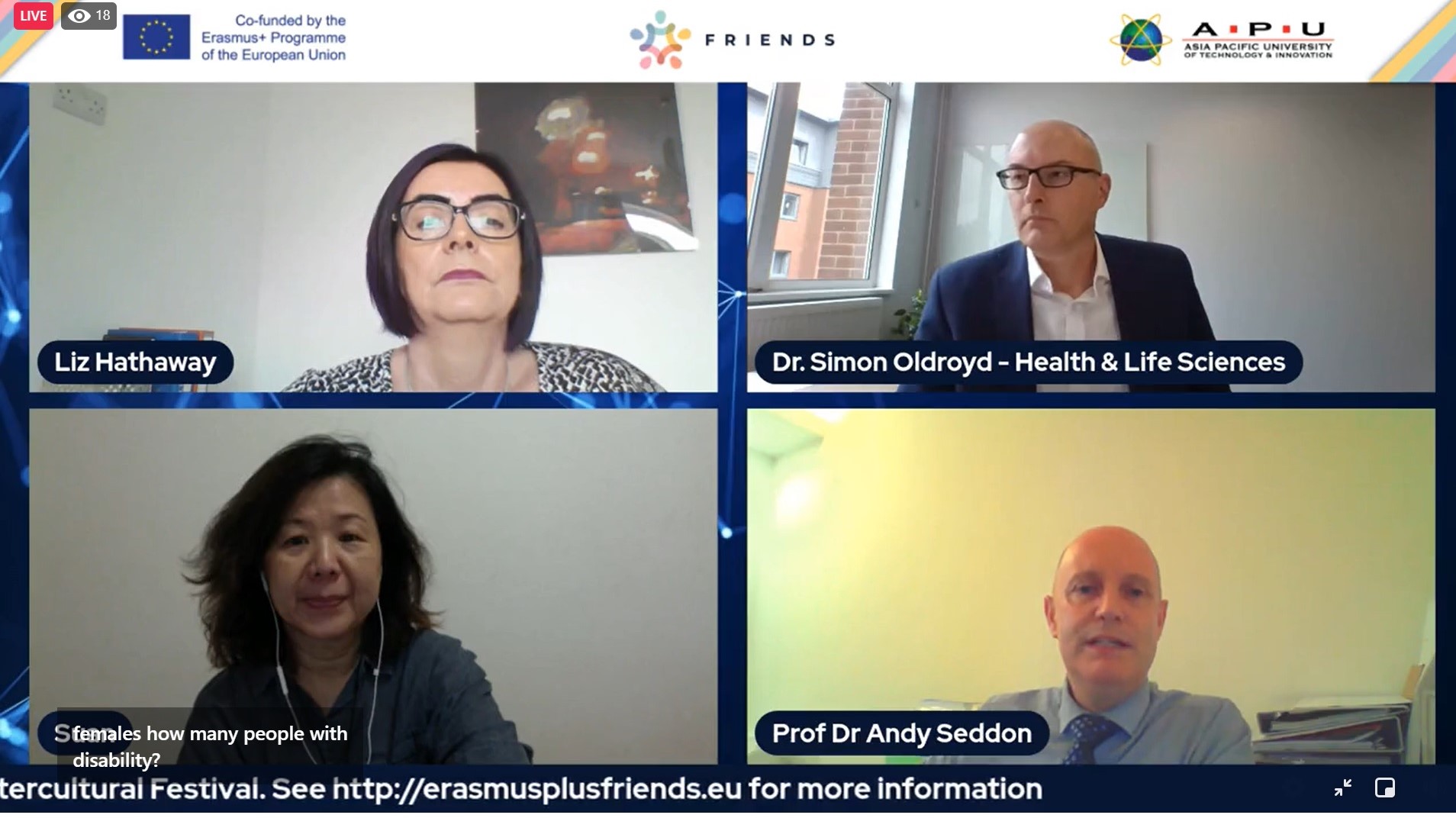 ERASMUS is an acronym for the European Region Action Scheme for the Mobility of University Students. It was established in 1987 by the European Community. Led by Prof. Dr. Andy Seddon, Senior Director of Partnership and Standards at APU, the prime goal of the FRIENDS project is to develop students’ global competence through the integration of intercultural dimensions into the university’s formal and informal curriculum.