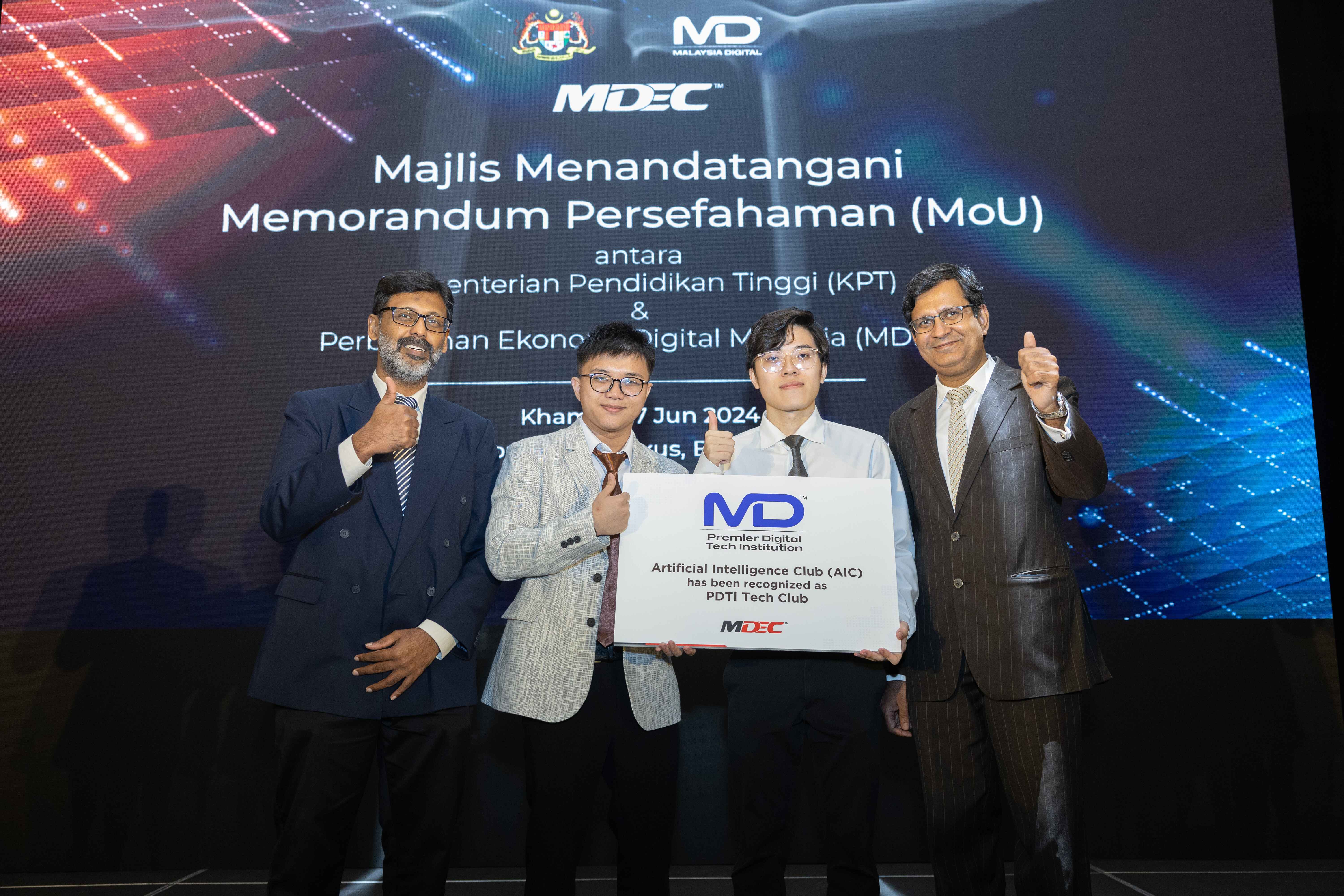 Asia Pacific University of Technology & Innovation (APU)’s Artificial Intelligence Club (AIC) has been honoured as a member of the Malaysia Digital Premier Digital Tech Institutions (MD PDTI) Tech Club. This prestigious accolade was formalised during the official launch of the MD PDTI Tech Club initiative, held on 27 June 2024 at Bangsar South, Kuala Lumpur.
