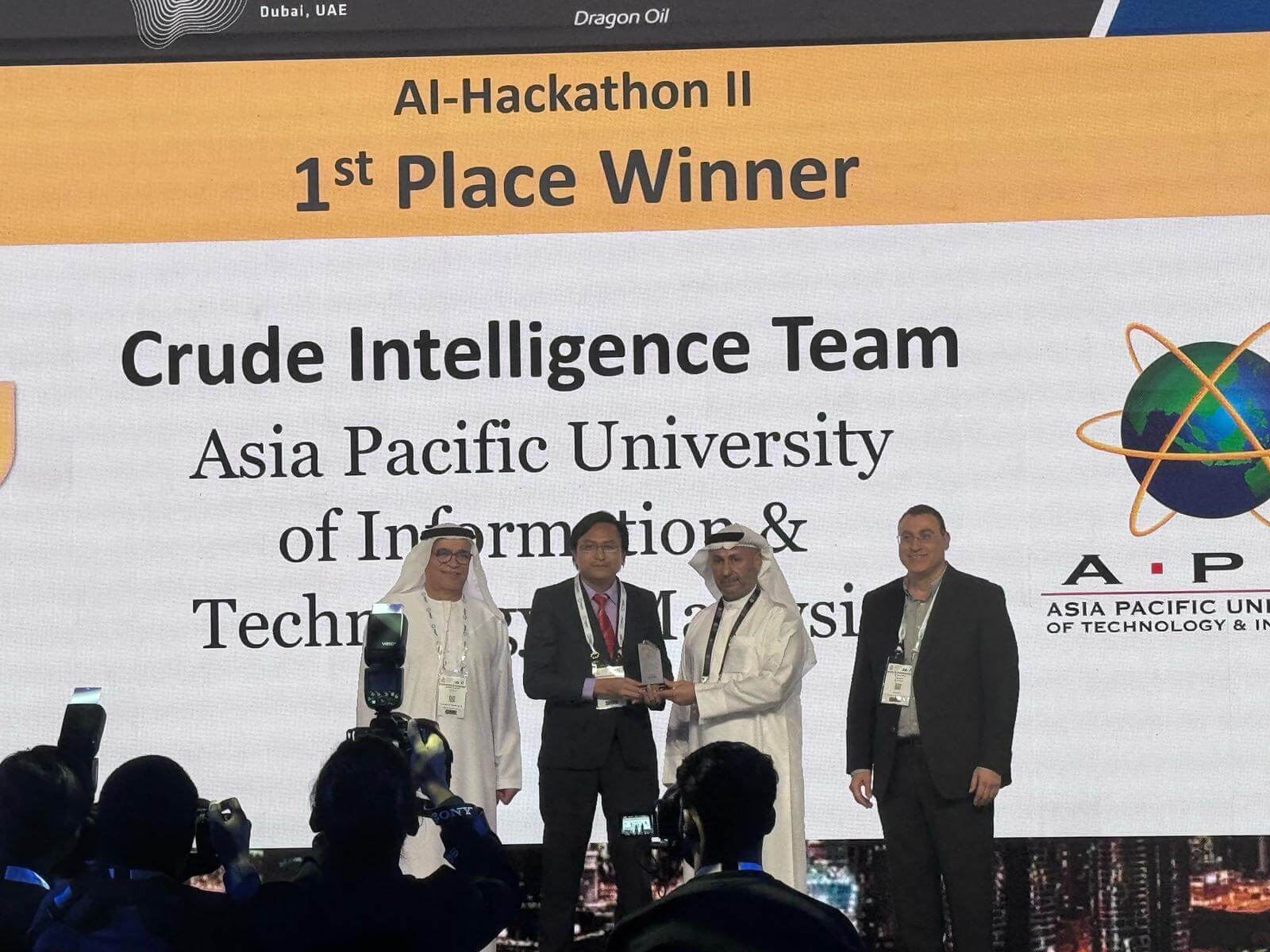 Held at the Dubai World Trade Centre from 21 to 23 April, the event gathered the brightest talents from across the globe. Among them, APU’s Team Crude Intelligence clinched the highly coveted First Place Award, underscoring their command of cutting-edge technology.