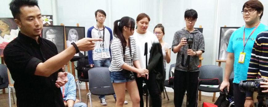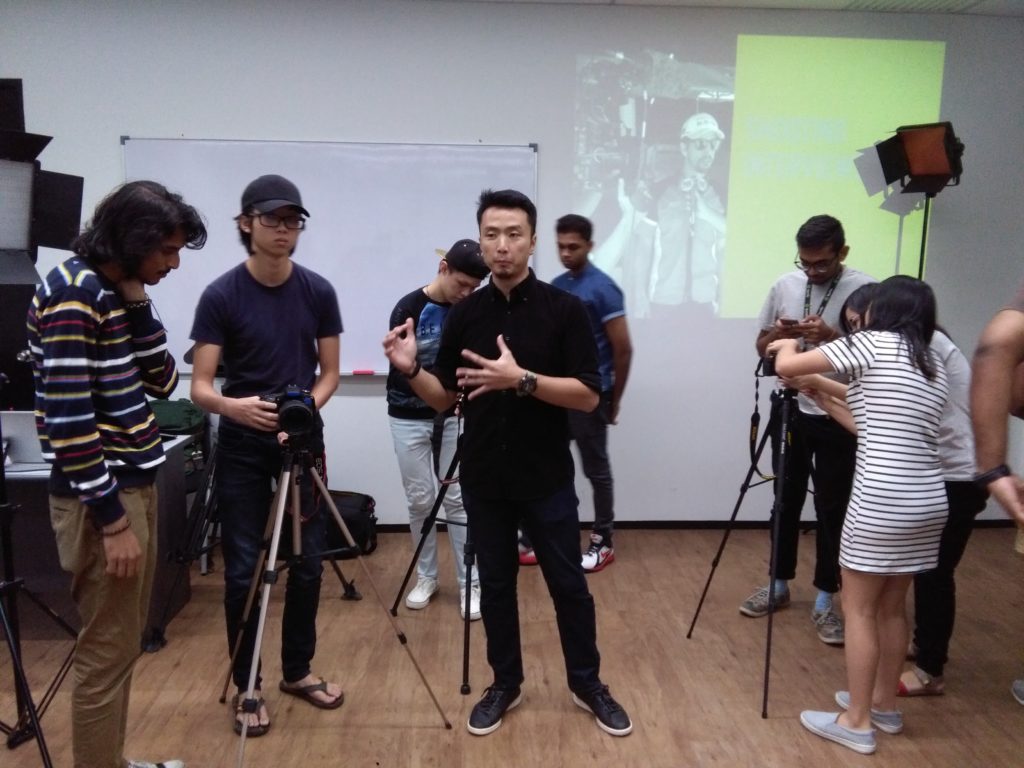 The class then divided into groups of 3 to practice setting up their own interview shoot. Chin Hor went around to give more personalized feedback to each group. After staying on for another hour post-workshop to quiz Chin Hor, the students finally left, looking inspired and ready to give cinematography their best shot.
