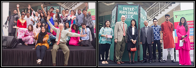 It was with great fanfare that Taylorian international students paraded flags into the amphitheater area at the Lakeside campus to launch the first ever International Week. The launch event was officiated by the Vice-Chancellor & President, Prof. Hassan Said as well as Prof. Perry Hobson, the Pro-Vice Chancellor for Global Engagement and Ms. Angela Pok, the Vice-President for Student Experience along with the President of the International Student Council, Hamzah Aslam and also the Vice President, Nicholas Sidharta.