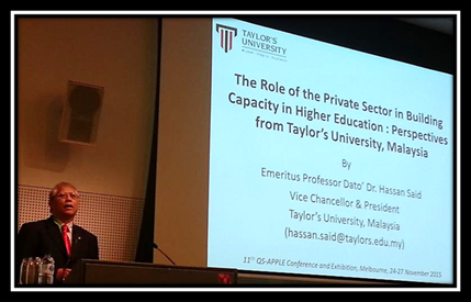 Given the recognition of the achievements of Taylor's University, Professor Hassan Said, the VC and President of Taylor's University was also invited to present at one of the Plenary Sessions of the QS-APPLE conference on "The role of the private sector in building capacity in higher education: Perspectives from Taylor's University, Malaysia". To read the full story clickhere and to find out more about the QS Stars click here.
